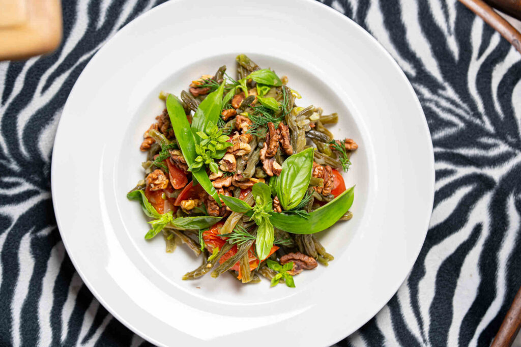 Im Bistro Zebra neben der Zürcher Bäckeranlage weht seit Anfang Jahr ein neuer Wind. Das junge Team bietet einfache Spezialitäten aus der französischen Küche an. Mittendrin: Julia Lerch, die nach der Kochlehre an einigen Stationen Halt machte. So kochte sie beispielsweise eine Saison lang bei Rebecca Clopaths Esswahrnehmungen im bündnerischen Lohn oder stand in Bangkok in fremden Küchen, um möglichst tief in die thailändische Gastronomie einzutauchen. Mit Leidenschaft und Neugier setzt sich die 28-Jährige mit Lebensmitteln und deren Hintergrund, Anbau und Verarbeitung auseinander – ob es nun die Baumnüsse aus dem elterlichen Garten sind, die im Bohnensalat verwendet werden (siehe Rezept), oder Kräuter, die auch mal aus dem Wald stammen.